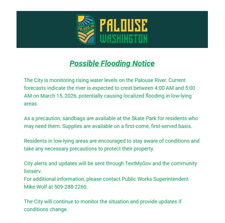 Stay connected to the City of Palouse by signing up to receive official news and alerts by email!